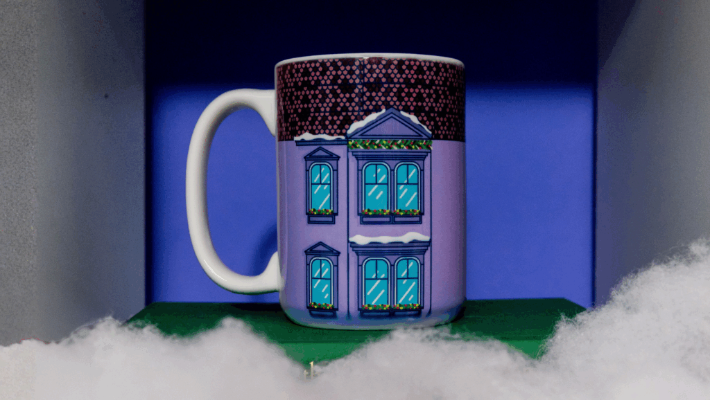 - Select Your Design: B201D_Christmas_Village_House_Mug
