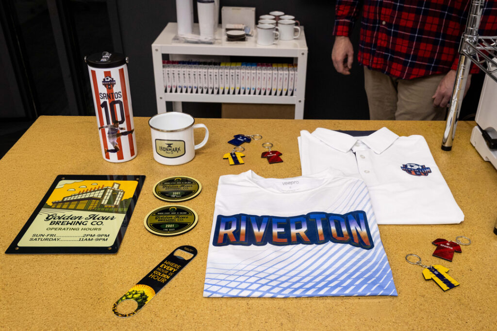 Sublimation is a custom printing process that uses heat to transfer dye into materials like polyester fabric or specially coated surfaces such as mugs or metal panels. The result is a full-color, long-lasting print that won’t peel, crack, or fade. It’s ideal for creating custom apparel, gifts, and home décor.